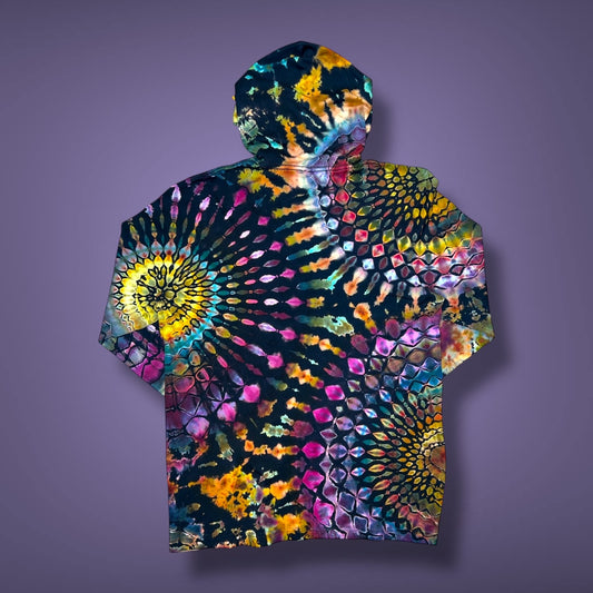 Stained Glass Reverse Dye Hooded Long Sleeve - Adult Large - Fall Gem Tones