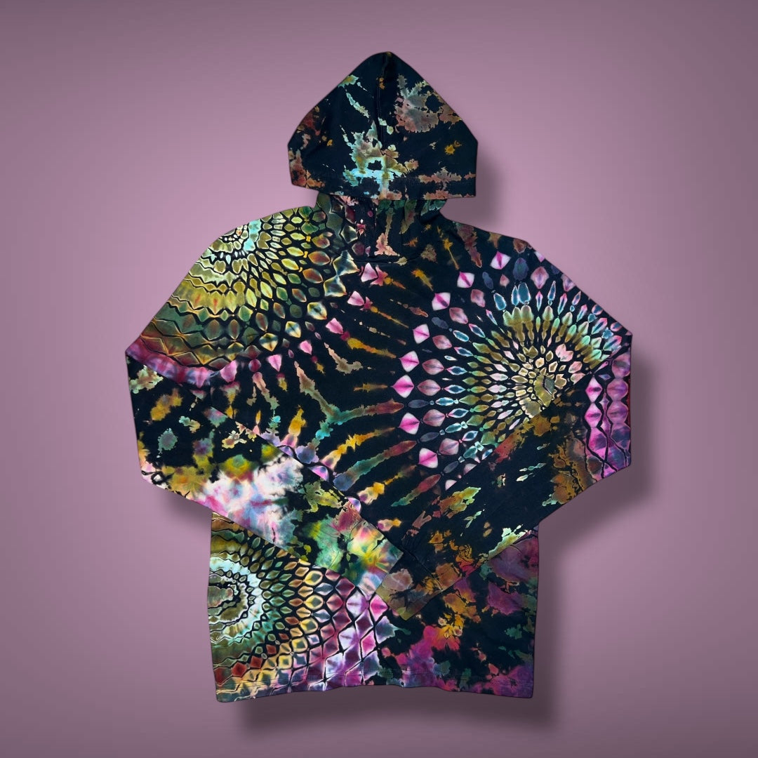 Stained Glass Reverse Dyed Hooded Long Sleeve - Ruby Glow - Adult Small